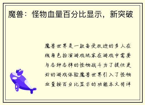 魔兽世界如何教武器发光 在魔兽世界这个游戏中,武器的外观设计是玩家们非常关注的一个方面。而让武器发光则是让武器更加炫酷的一种方式。本文将从多个方面详细阐述魔兽世界如何教武器发光。 1. 光效技术的运用 魔兽世界中的武器发光效果主要通过光效技术来实现。光效技术是一种利用计算机图形学和光学原理来模拟光线...